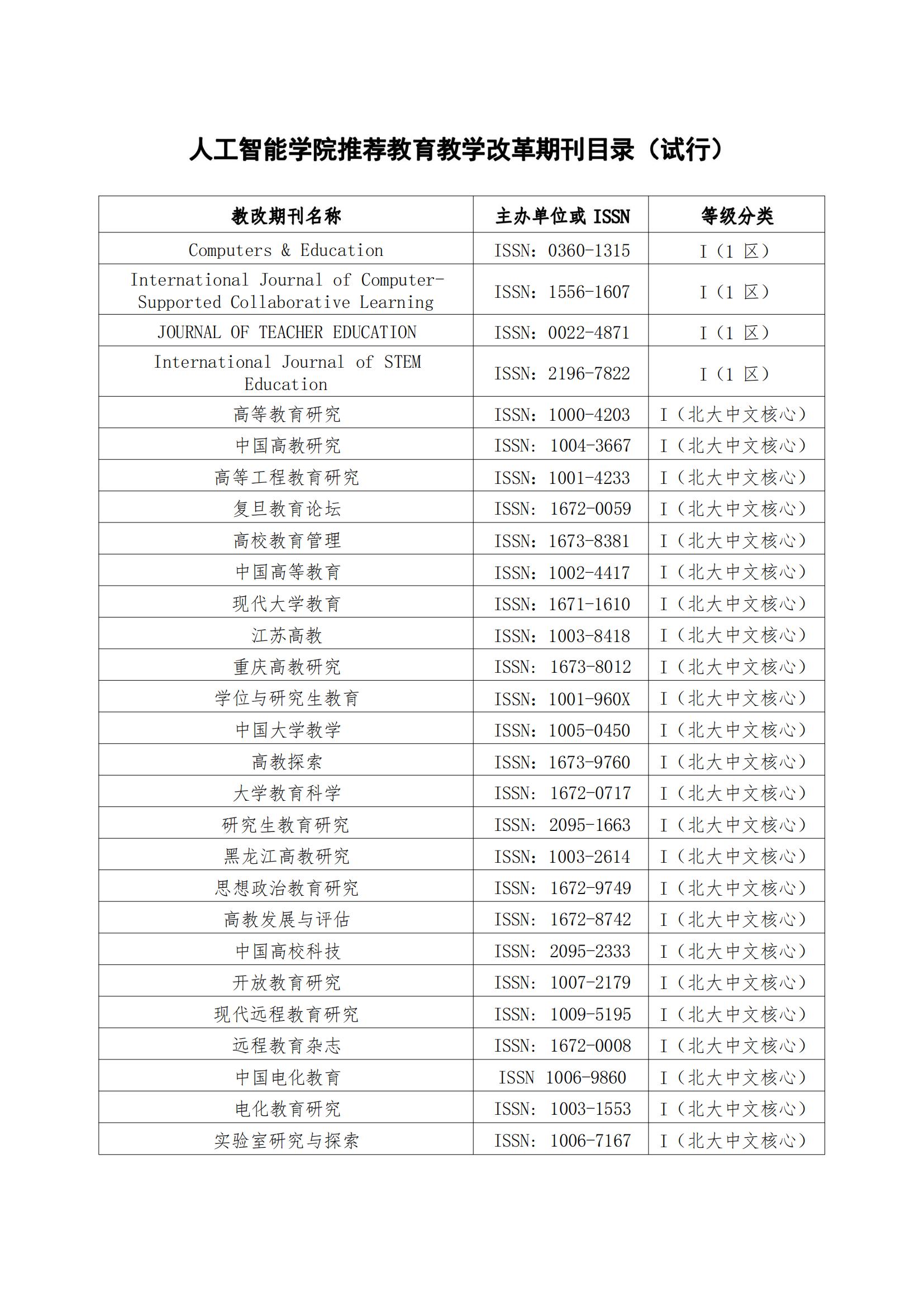 米乐mile官方网站推荐教育教学改革期刊目录(试行)