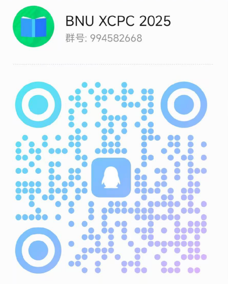 欢迎热爱算法编程的同学报名参加选拔,加入赛事QQ群:994582668 (二维码后附)。后续竞赛相关事宜在群里沟通,联系人:徐鹏飞 (xupf@bnu.edu.cn)。
