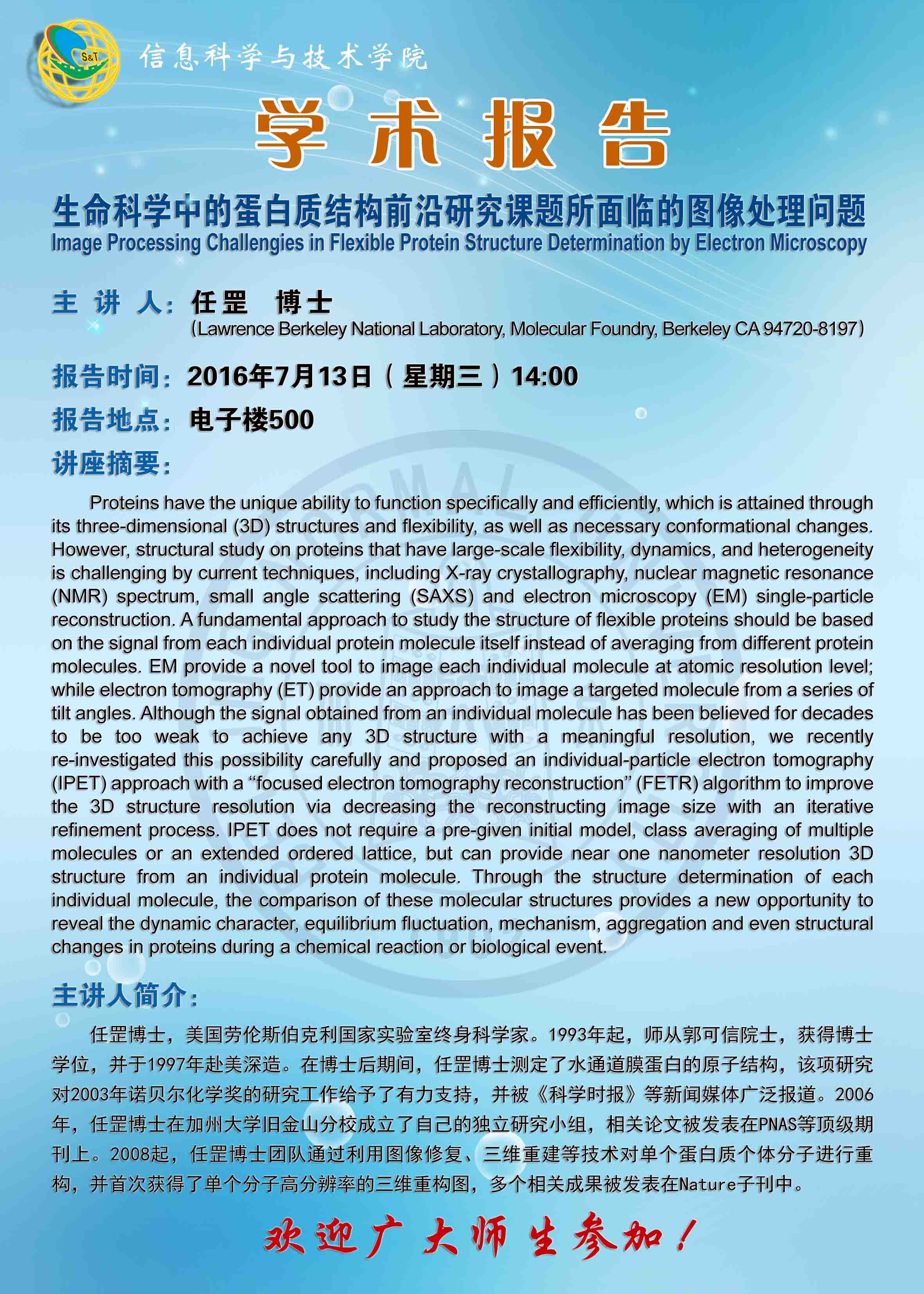 学术报告-生命科学中的蛋白质结构前沿研究课题所面临的图像处理问题