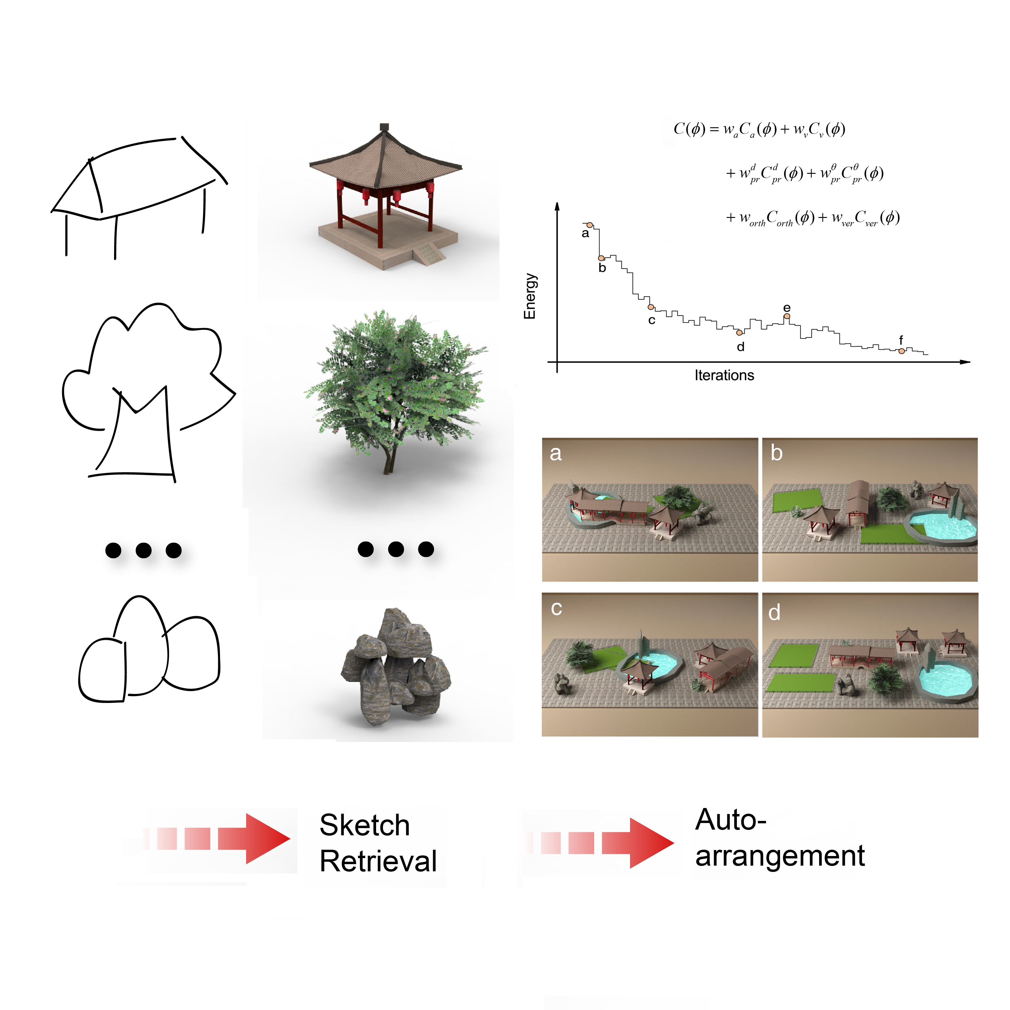 构建三维建筑场景是CG工业、VR产业的基础工作,也是计算机图形学领域的热点研究内容。报告将围绕三维场景快速建模方法的研究现状和发展趋势展开介绍,重点讲述一种针对室外三维建筑场景的快速建模方法。将模型驱动的场景建模方法引入室外场景建模中,具体包括快速检索和自动优化布局两个方面。首先,用户通过手绘草图检索三维模型,采用流形排序技术对检索算法进行改进,得到了更快更好的检索结果。其次,提出了针对室外建筑场景的能量优化约束条件,定义满足功能性和美观性要求的能量函数。提出分步执行策略和随机跳转避免陷入约束冲突和局部最优陷阱。实验结果证明了本文方法在不同类型场景布局中的有效性,并在游戏场景的实际开发中得到应用。