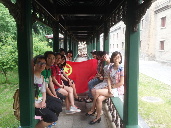 来到古朴典雅的辅仁校区,同学们都深深地被这里的历史厚重感所吸引。在辅仁大学当中,同学们就仿佛回到了上个世纪,这样的氛围令人流连忘返。然而这次同学们还有一项严肃的事情需要完成——纪念法西斯抗战胜利70周年,了解辅仁大学的历史文化。在欣赏完眼前的美景之后,同学们在凉亭的长廊中围坐在一起,团支书给大家讲述了法西斯抗战的历史背景,以及当时北京的情形。同学们了解到了辅仁大学的很多历史,宁死不挂日本国旗、坚持上课不卑不亢的民族气节都让同学们深深的折服。