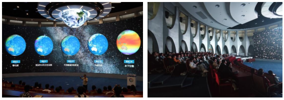 在SDG中心的数字地球演示厅内,同学们落座于巨大的荧幕前,观看数字地球相关视频。震撼的视听体验让同学们直观了解到数字地球科学平台及其应用,深刻感受到大数据和科技创新在推动全球可持续发展目标中的重要作用,激发了同学们对未来科技助力全球可持续发展的美好期待。