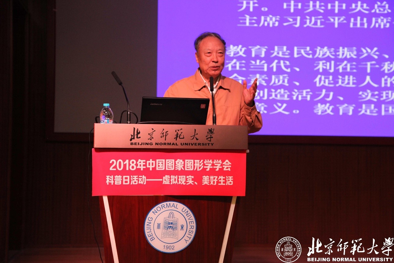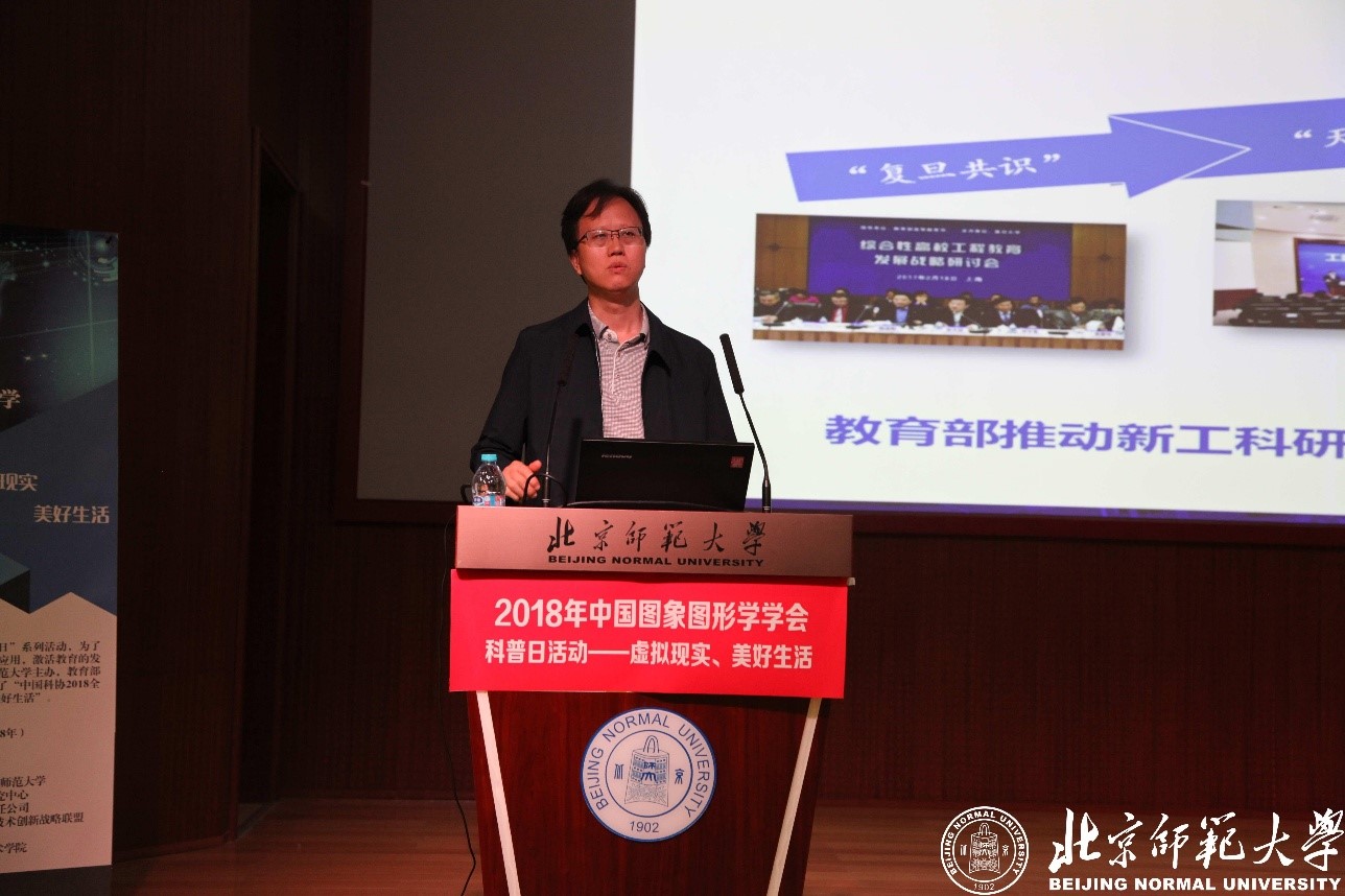 本次活动由中国图象图形学学会主办,北师大信息科学与技术学院虚拟现实应用教育部工程研究中心承办,100余位来自各个单位和领域的科技工作者和科普爱好者参加了本次活动。中国图象图形学学会科普与教育工作委员会主任、米乐mile官方网站信息科学与技术学院周明全教授主持活动,学校科研院科学技术处副处长彭定志、信息科学与技术学院党委书记别荣芳教授及校团委负责同志以及中科院计算所、新工科联盟、高校、高新企业的图像图形专家和教育界学者出席活动。