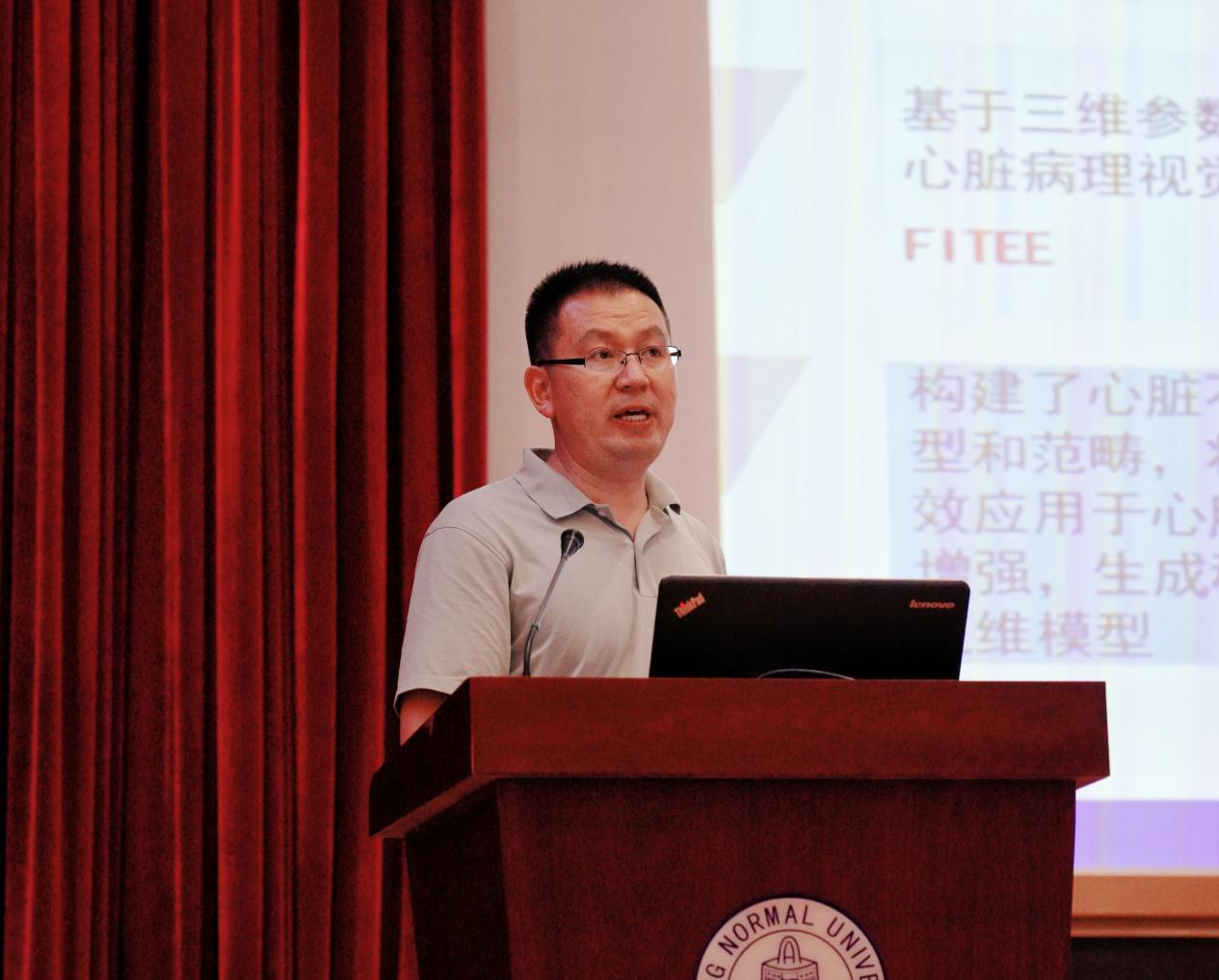田沄教授介绍了视觉知识与医学影像计算课题组(VKMICLab)的基本情况。团队主要研究内容是心脏影像的多重知识表达,综合多重知识,智能解读心脏影像。具体包括,影像数据生成、心脏语义分割和病理预后分析。田老师还提到了课题组的活动,参与前沿交流研讨会等学习平台。