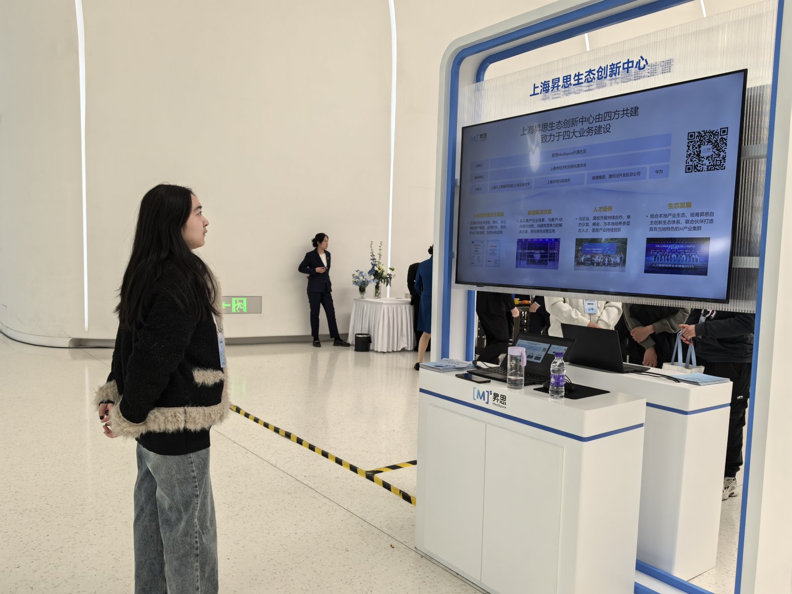 上午的主会场峰会结束后,同学们自行参观了会场内的展位及展板,了解大模型AI框架在教育、制造、金融、通信等多个领域的广泛应用。这些应用不仅提升了工作效率,还为各行业带来了新的发展机遇。特别是开源生态的讨论,这让同学们认识到开源不仅是技术发展的加速器,更是推动全球技术创新和合作的重要力量。昇思MindSpore通过开源共建,汇聚了全球开发者的智慧,推动了人工智能技术的快速发展。