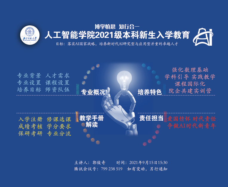 同学们全程认真聆听,积极互动,对学院专业设置和本科人才培养机制等方面有了较为清晰的认识,尤其对郭老师展示的海豚大数据数据科学与人工智能训练营、AI+机器人训练营以及本科生科研创新项目中取得的诸多成果,产生了浓厚的兴趣。会议结束后,郭老师还对新生们目前关心的选课事宜进行了耐心答疑。