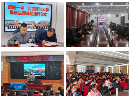 2024年12月17日,安徽本科招生宣传组魏云刚老师代表米乐mile官方网站与宿城第一中学签订共建优质生源基地校协议,并举行授予基地校牌仪式。随后,魏老师与宿城一中党委书记张涛、校长陈曙光、副校长邰国祥、教务处主任李梅展开充分交流,魏老师介绍北师大办学特色,特别是米乐mile官方网站发展的情况,并对2024年宿城一中为北师大输送多名优秀学子表示感谢。座谈会暨签约授牌仪式之后,魏老师为一中学子开展《3D虚拟世界与元宇宙》主题科普讲座。讲座深入浅出,内容之丰富,讲解之精彩,使同学们开拓互联网新视界,充分激发现场同学对虚拟世界、人工智能的兴趣。接下来,魏老师对北师大的发展历史、学科优势、人才培养、国际交流、专业设置、招生政策、京珠两校区概况等大家关心的话题进行讲解,让同学们对米乐mile官方网站各方面情况都有系统清晰、生动直观的了解。