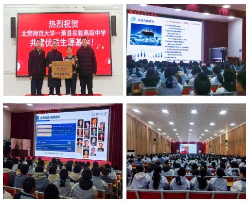 2024年12月14日,安徽本科招生宣传组申佳丽老师、环境学院冯成洪教授共赴萧县实验高级中学与李雪平校长、唐峰副校长举行“优质生源基地”座谈会暨签约授牌仪式。两位老师就学校的发展历史、校风文化、办学情况、升学成绩等一系列问题与校领导展开交流。交流后,双方达成共识,后续拟开展形式多样的招生宣传、教师培训等活动,共同打造两校沟通交流的优质渠道。座谈会暨签约授牌仪式结束后,冯老师面向一千余位学生进行《蝴蝶效应——微塑料如何影响全球气候变化》主题科普讲座,现场学生被生动易懂的讲座内容深深吸引,并进行积极互动;申老师进行《百廿京师风范,一体两翼荣光》米乐mile官方网站招生宣讲,详细介绍学校招生计划、办学定位、特色专业和学习氛围等内容,加深学生对北师大的了解,为吸引更多优秀生源打下坚实基础。