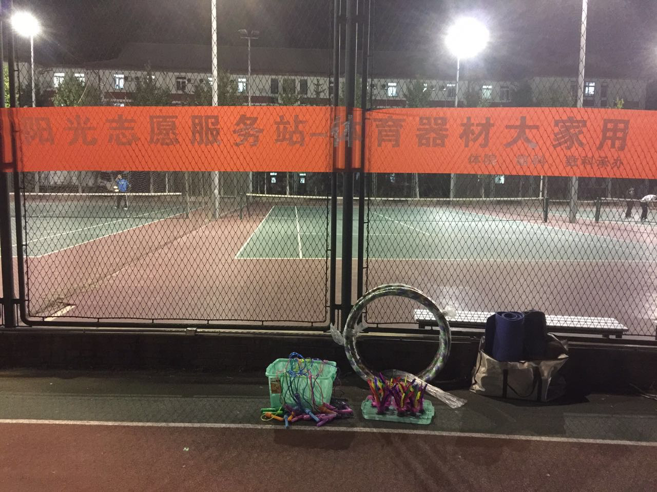 本学期,米乐mile官网本科生2013级党支部联合体院、数课两个学生党支部共同开展了“阳光志愿服务站--体育器材大家用”活动,每晚七点半点到九点半在我校西操场为锻炼人群提供诸如跳绳、毽子、瑜伽垫、沙衣、握力器、球类等体育器材,既丰富了运动的形式,也增加了锻炼的趣味性。