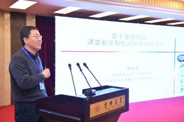 骆祖莹教授自2013年起,使用AI技术开展课堂教学自动评价(CTAE)研究,在课堂考勤、学习行为分析、学习注意力分析、学习情感分析、师生互动、基于自然语言处理的教学文本分析等方向取得多项研究成果,于2018年出版了全球首部CTAE专著《课堂教学自动评价:从理论到应用》,下图为他的路演现场照片。