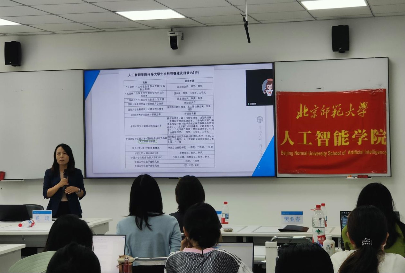 樊亚春老师对学院竞赛工作进行了介绍,梳理了学院历年竞赛成果并展示了部分优秀作品,同时介绍了百度飞桨平台的技术资源与学院各课题组的研究方向,并就竞赛选题,实践设计,项目答辩等内容为同学们提供了实用建议。