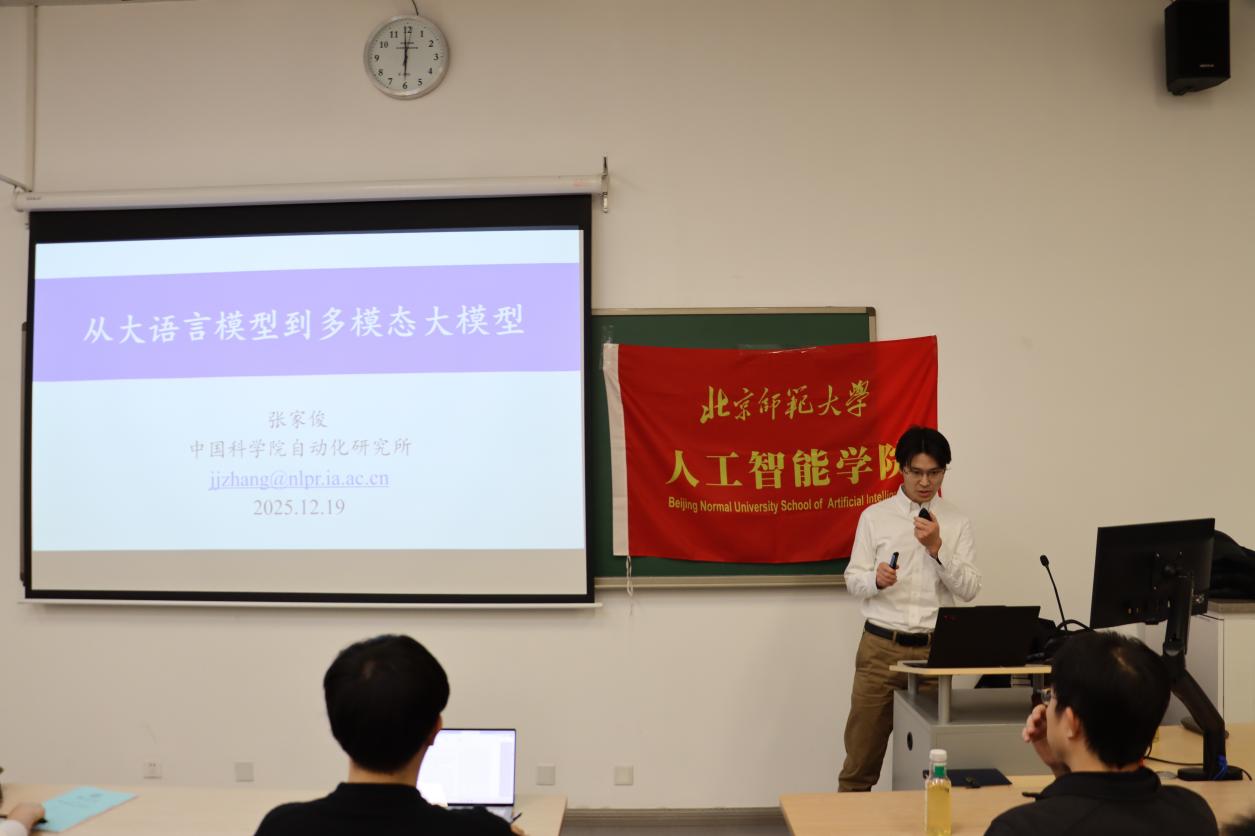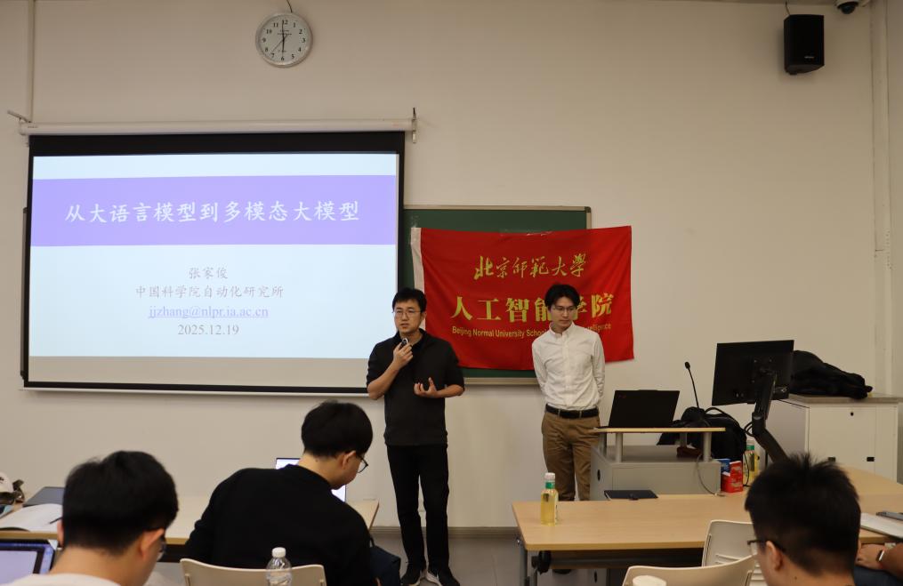 2025年12月19日,米乐mile官方网站智能学术沙龙第四十四期在昌平校园成功举办。本期报告邀请到了中国科学院自动化研究所研究员、博士生导师、中国科学院大学岗位教授张家俊老师。张老师主要研究方向为自然语言处理、多语言多模态大模型,获得国家优秀青年科学基金资助,入选中国科协首届青年人才托举工程、中国科学院青年创新促进会优秀会员和北京智源青年科学家,主持科技创新2030一“新一代人工智能”重大项目。出版学术专著2部、译著1部,获得北京市科学技术奖一等奖、首届祖冲之奖年度突出成果奖等。担任中国中文信息学会理事和机器翻译与多语言信息处理专委会副主任。担任Artificial Intelligence、IEEE/ACM T-ASLP和《自动化学报》等期刊的编委,担任ACL-2026的程序委员会共同主席。讲座由米乐mile官方网站黄永祯老师主持,现场座无虚席,学院研究生共计60人次参与。