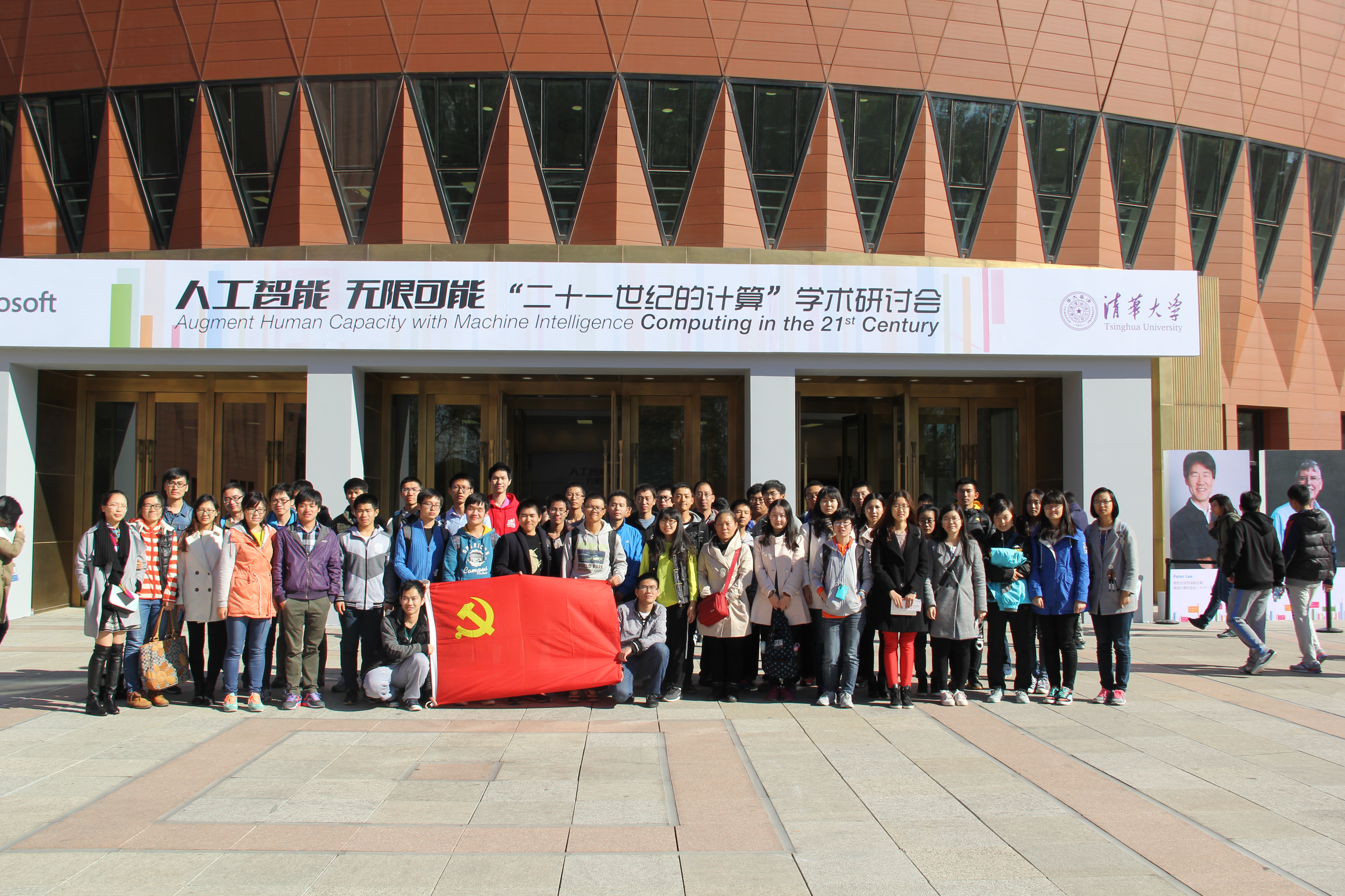 2015年10月28日,由微软亚洲研究院与清华大学联合主办的 “二十一世纪的计算” 大型国际学术研讨会,在清华大学新清华学堂隆重举行。本届大会由微软亚洲研究院常务副院长郭百宁博士和清华大学软件学院院长刘云浩博士共同担任联合主席。包括两位图灵奖获得者在内的多位享誉世界计算领域的大师受邀与现场近2000名中国高校师生分享计算领域的前沿研究成果,我班2015级硕博士班共27名研究生、博士生参加了此次会议,与众多学者一起探讨未来 “人工智能的无限可能” 。