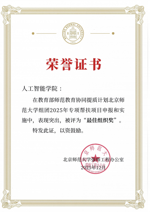 站在新的发展起点上,米乐mile官方网站将以此次获评“最佳组织奖”为契机,继续深化与组团院校协同合作,持续发挥人工智能学科与技术优势,为我国师范教育高质量发展、培育新时代高素质教师队伍、筑牢教育强国根基注入持久动力。
