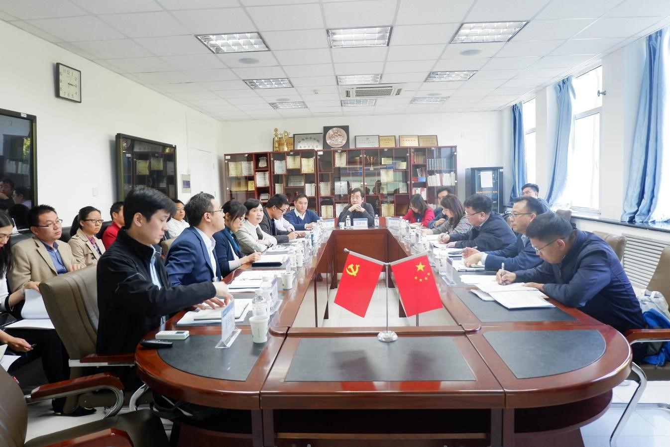 学院党委书记杨学玉专题汇报了学院党建工作情况和未来建设思路。学院执行院长姚力展示介绍了学院成立以来的部分建设成果,专题汇报了学院整体发展规划、学科建设、人才培养、科学研究、队伍建设等各方面主要成效。中国电科集团科技部创新能力处石晓军处长对学院一年来的发展给予了充分肯定,对北师大在与中国电科集团前期合作中的努力表达了感谢,期待双方进行进一步合作。学院党政班子成员和教师代表与程建平书记一行就学院各项工作进行了充分的交流讨论。