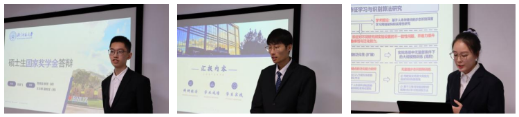 莅临答辩会的评审老师及学生代表有:学院院长黄华老师,主管研究生培养的副院长、学术委员会主任王川老师,教授代表郭建伟老师、张家才老师,班主任代表侯赛辉老师、张鸿文老师,以及学生代表苏轩。研究生国奖候选人共计20名,包含6名博士、14名硕士。答辩会还吸引了多名同学现场观摩学习。