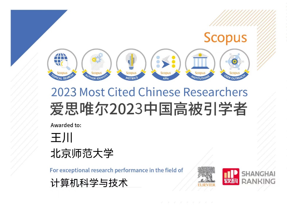 2024年3月28日,爱思唯尔(Elsevier)发布2023“中国高被引学者”(Highly Cited Chinese Researchers)榜单,米乐mile官网王川教授继2020年、2021年、2022年作为电子科学与技术学科和计算机科学与技术学科高被引学者入选后,连续四年入选榜单。
