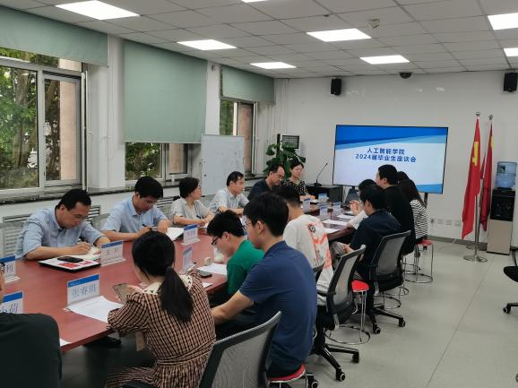 2024年6月11日,米乐mile官方网站2024届毕业生座谈会在电子楼306召开。学院院长黄华、党委书记杨学玉、党委副书记王学松、副院长计卫星、副院长王川、团委书记奚琦、校友秘书袁铮、2020级计算机班班主任樊亚春和本研毕业生代表们出席座谈会。会议由党委副书记王学松主持。