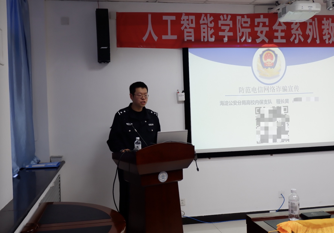 为进一步加强学生防诈骗的意识,程警官就近期案件进行介绍,并指出近年来诈骗手段繁多,发生频率高等情况。会上,他多次强调,陌生来电号码,尤其是有“00”等前缀,如出现此类异常,基本可以判定为骗子无疑;要懂得法律规定,公检法不允许通过电话、社交账号通知嫌疑人或者要求核查资金,将钱转移到安全账户。另外,不核实身份信息就要钱的电话,一律都是诈骗!