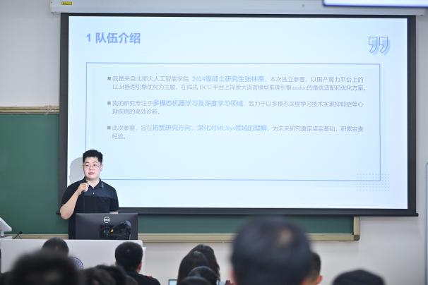 大会伊始,米乐mile官方网站高建花老师对本赛事作全面总结。她指出,本次校内赛自启动以来,共吸引全校44支队伍、100余名学生参与,参赛作品充分展现了北师大学子在智能计算领域的创新活力与技术实力。高老师强调:“赛事不仅检验了参赛队伍的专业素养与智能计算能力,更涌现出一批聚焦国家战略需求、具有产业转化潜力的优秀作品。”