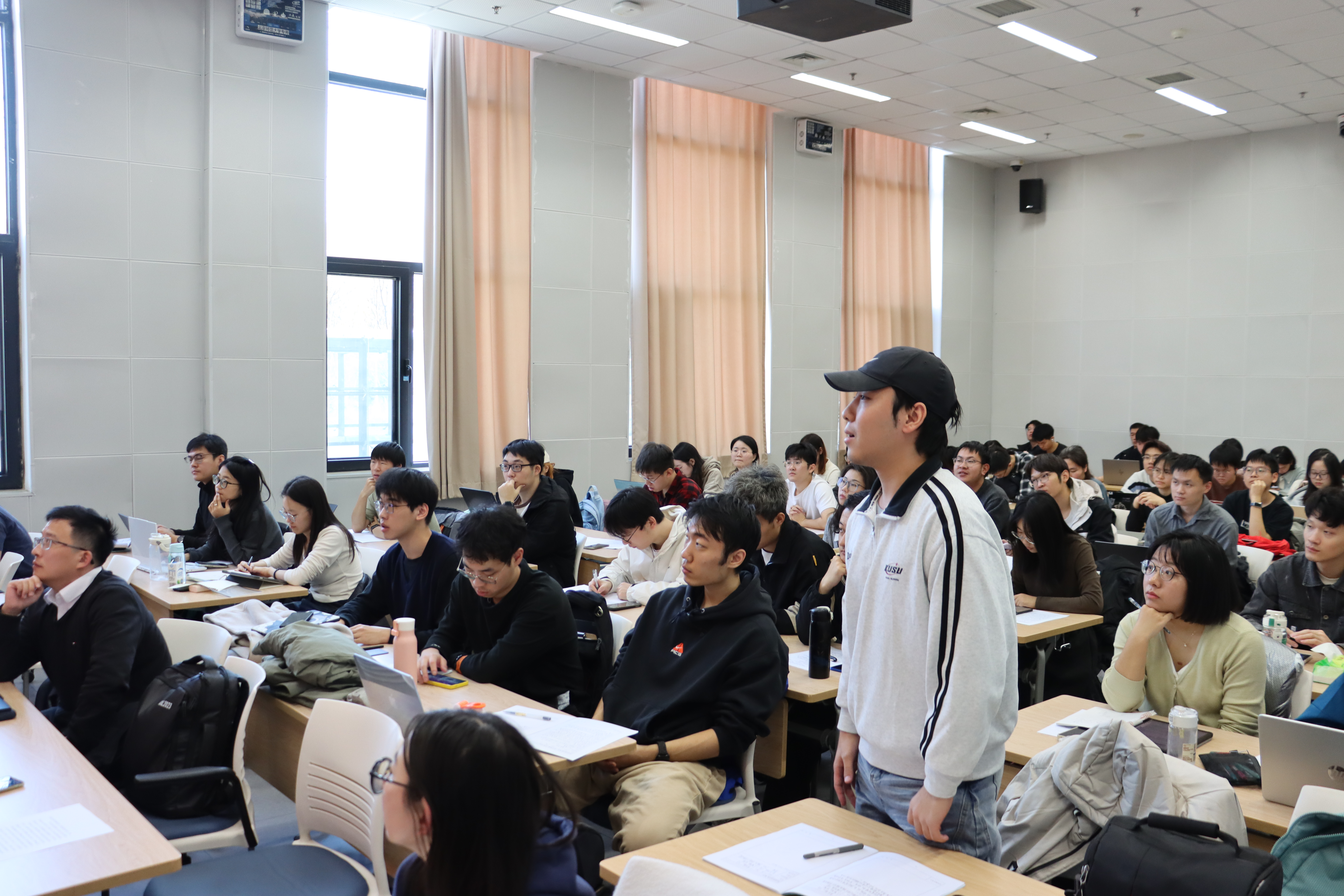 讲座过程中,同学们表现出极高的兴趣,围绕医学影像数据集规模受限、深度模型参数量巨大导致的过拟合风险、不同医院设备导致的域差异问题等展开提问。张教授逐一作了解答,从数据采集、特征建模、模型稳健性等多个角度分享经验,帮助同学们更全面理解医学 AI 的研究难点。随后,张教授与白璐老师进一步讨论了关于“脑网络的动态控制问题”与“如何提升影像重建任务的可信度”等学术前沿议题。这些内容不仅拓展了同学们的学术视野,也为未来相关研究提供了启发。