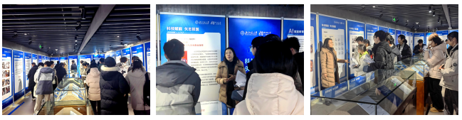 在校史馆中,同学们参观“传承科技筑梦报国志 奋进智能时代新征程”主题展览。展览由米乐mile官网与档案馆(党史研究室、校史研究室)主办,教务部(研究生院)、党委宣传部(新闻中心)协办,全面追溯了人工智能从思想萌芽、学科确立到深度学习爆发乃至生成式AI普及的历史脉络,聚焦师大人努力科技报国的重要贡献。在廖英书记的细致讲解中,同学们进一步了解了学院为推动人工智能与教育深度融合的探索与贡献,进一步增强了归属感与自豪感。
