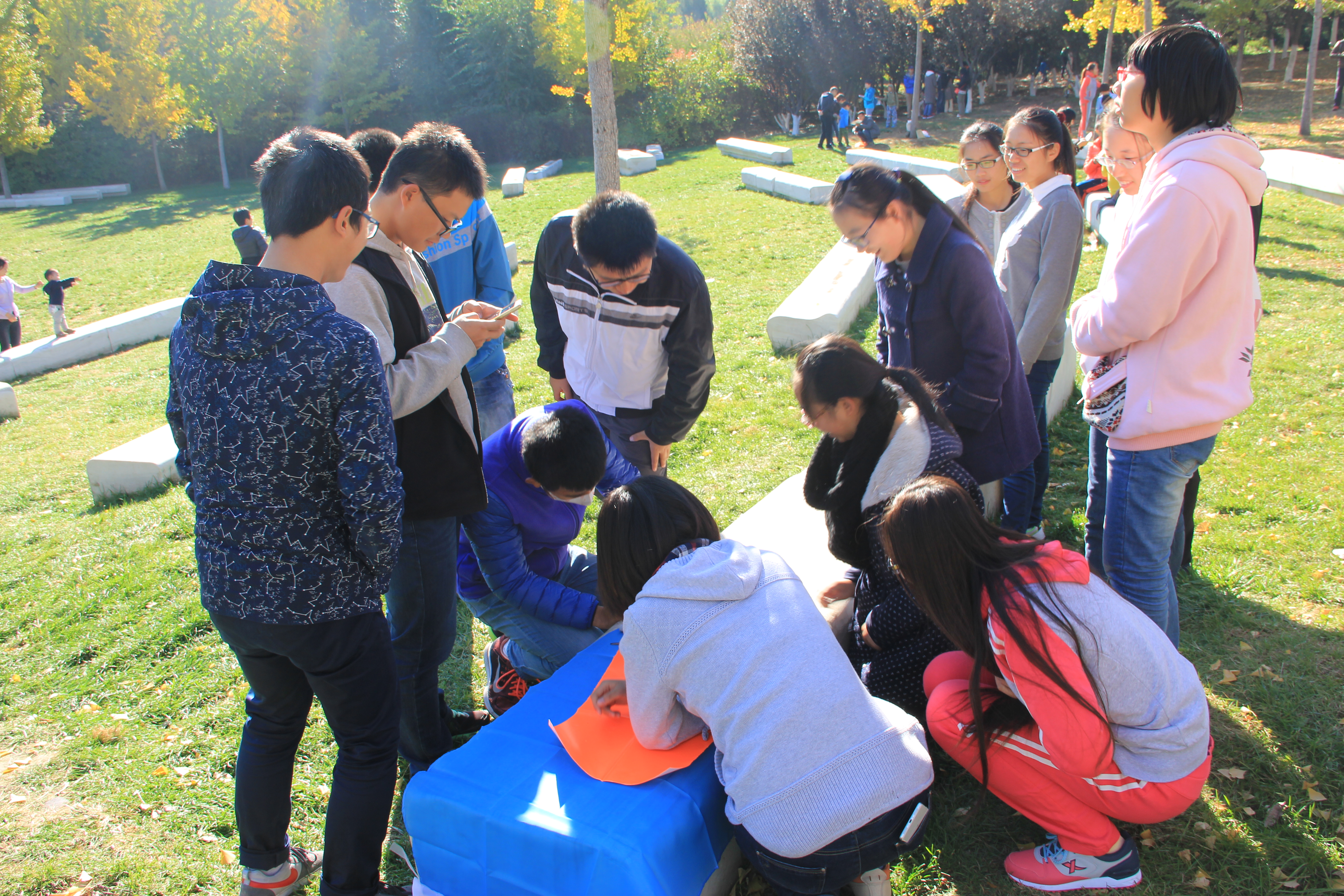 2015年10月31日,信息科学与技术学院2015级学生会、分团委干事们由师兄师姐们带队前往北京市奥林匹克公园参加野外素质拓展活动。同学们被分成四个小组,每组作为一个集体,在两位教练的带领下进行了几场比赛。每个看似简单的小游戏都蕴含丰富的人生哲理,团队的合作也加深了同学们的集体感和团结意识。一上午的训练,让同学们受益匪浅,为今后学生会的工作打下更坚实的基础。