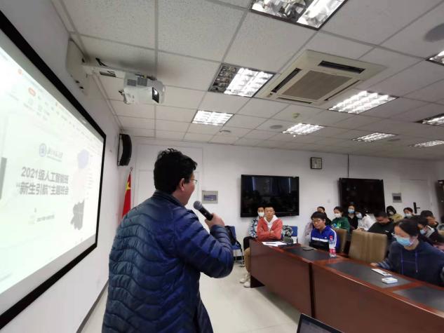 2021年10月31日,2021级人工智能班在电子楼500开展“新生引航”主题班会。此次班会集新生引航活动、雪绒花活动、班会改选与团日活动于一体,四合一高效开展。为了引导同学们更好、更快地适应大学的学业与日常生活,在活动设计上,将引航分为“学业”与“生活”两方面,分别由班长和生活委员主持开展。